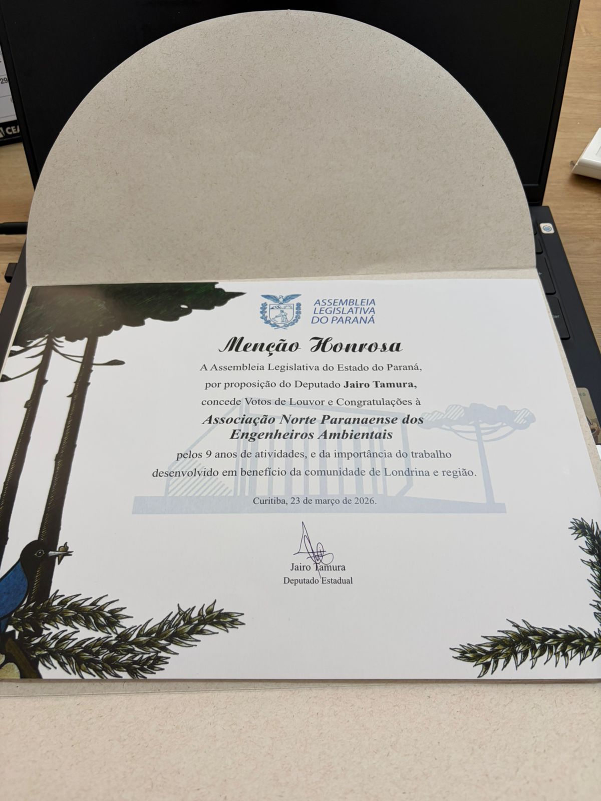 Como reconhecimento por sua atuação e pelos relevantes serviços prestados ao desenvolvimento técnico, ambiental e institucional do Estado, a ANPEA foi agraciada com Menção Honrosa pela Assembleia Legislativa do Estado do Paraná, destacando o impacto positivo de suas atividades e sua contribuição para a sociedade paranaense.